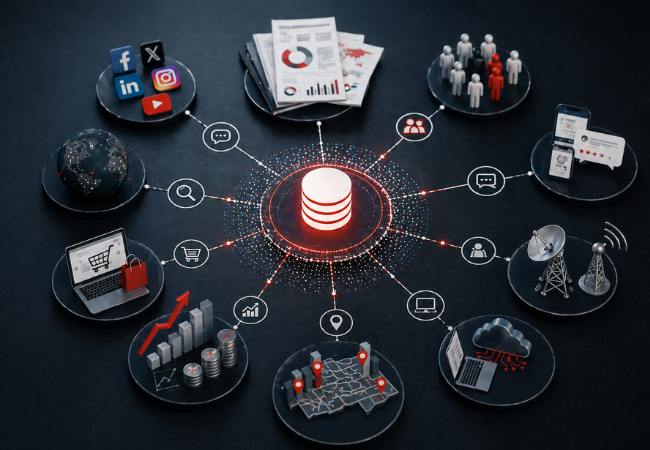 Para que el enfoque data-driven decision making funcione de manera efectiva, es necesario integrar distintas fuentes de información que permitan construir una visión completa del mercado. La inteligencia de mercado no se basa en un único tipo de dato, sino en la combinación de información que describe el comportamiento del consumidor, la dinámica competitiva y la evolución de las categorías.