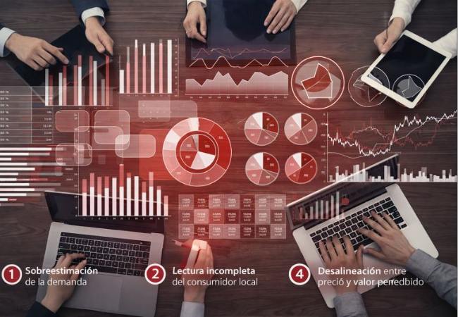 Uno de los errores más frecuentes es basarse únicamente en datos internos o históricos. El desempeño en el mercado de origen no garantiza aceptación en un nuevo contexto. Replicar proyecciones pasadas sin validar comportamientos locales suele llevar a sobreestimar la demanda y subestimar barreras de entrada.
