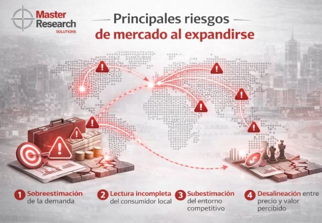 En los procesos de expansión, los riesgos de mercado suelen aparecer antes de que los indicadores financieros muestren señales claras. A partir de la investigación de mercados, es posible identificar riesgos recurrentes que, si no se evalúan a tiempo, comprometen la viabilidad del proyecto.