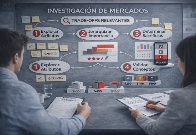 Otra aportación clave es identificar niveles aceptables de sacrificio. La investigación permite detectar hasta dónde el mercado tolera una renuncia antes de descartar el producto, ya sea en funcionalidad, tiempo, diseño o servicio.